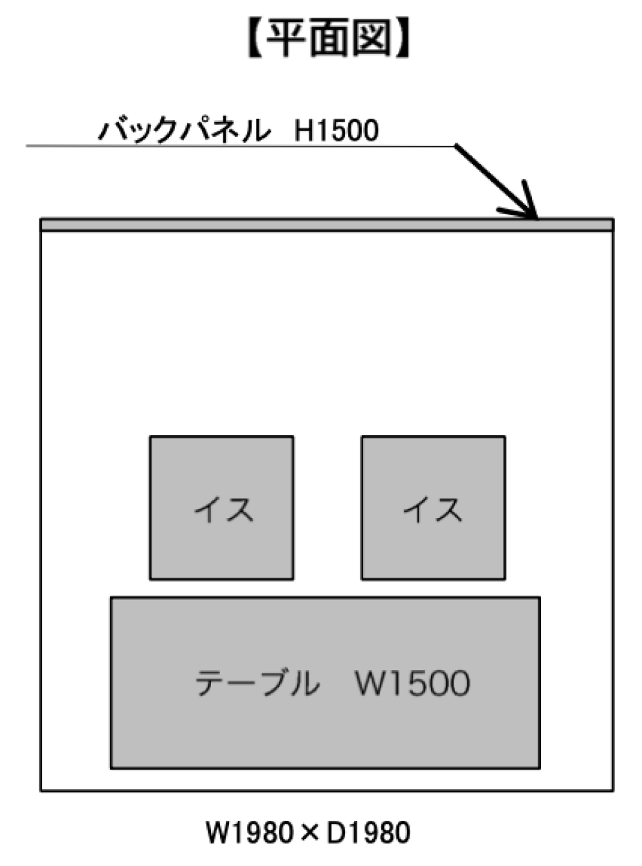 社名板、電気配線、その度品は別途有料となりますので、指定の用紙(出展者説明会時に配布)にてお申し込みください。