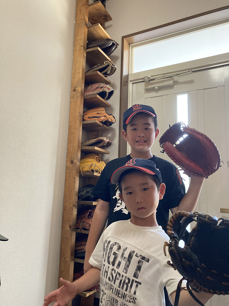 僕、弟、父は野球が大好きです❗️(母も) グローブという僕の仲間の居場所を作ってあげたいと思って作りました。道具を大切にして、こらからも大好きな野球を頑張ります❗️😊